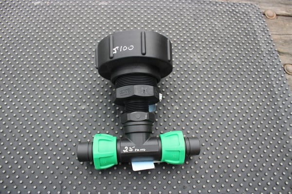 S100 X 8 COARSE THREAD IBC ADAPTOR WITH 25MM T JUNCTION HOSE CONNECTOR