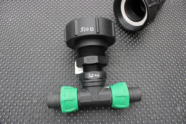 S100 X 8 COARSE THREAD IBC ADAPTOR WITH 32MM T JUNCTION HOSE CONNECTOR