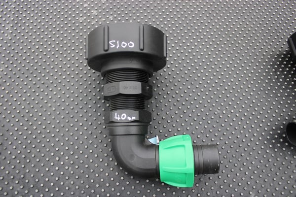 S100 X 8 COARSE THREAD IBC ADAPTOR WITH 40MM BEND HOSE CONNECTOR