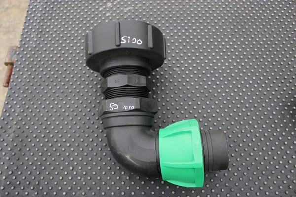 S100 X 8 COARSE THREAD IBC ADAPTOR WITH 50MM BEND HOSE CONNECTOR
