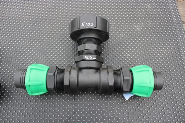 S100 X 8 COARSE THREAD IBC ADAPTOR WITH 50MM T JUNCTION HOSE CONNECTOR