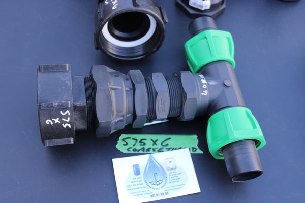 S75 X 6 COARSE THREAD IBC ADAPTOR WITH 40MM T JUNCTION HOSE CONNECTOR