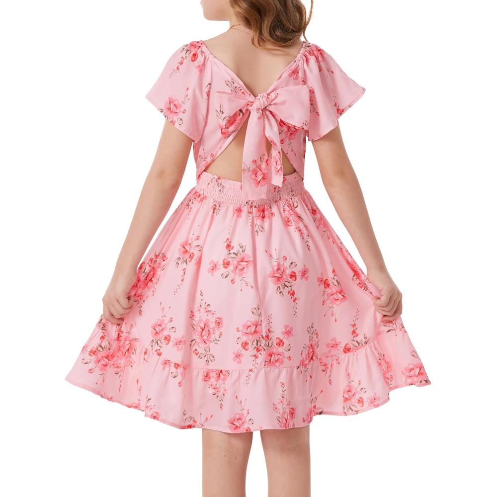 GRACE KARIN Girls Backless Floral Dress Formal Party Girls Easter Spring Dresses Girl Summer Hawaiian Dress(Floral on Pink)