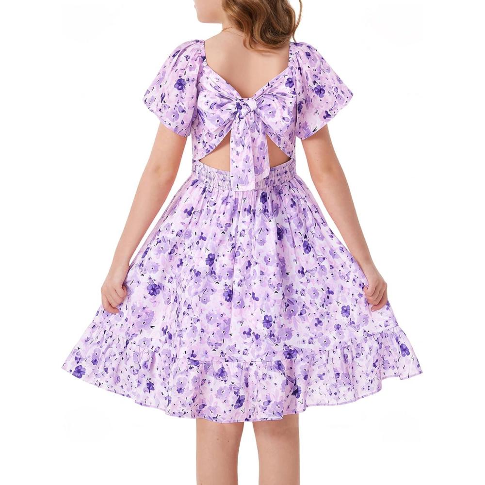 GRACE KARIN Girls Backless Floral Dress Formal Party Girls Easter Spring Dresses Girl Summer Hawaiian Dress(Purple Floral)