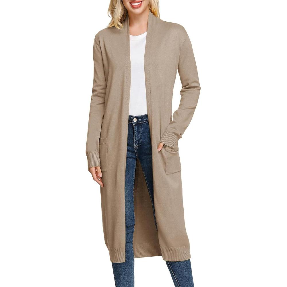 GRACE KARIN Essential Solid Open Front Maxi Long Knitted Cardigan Sweater for Women(Apricot)