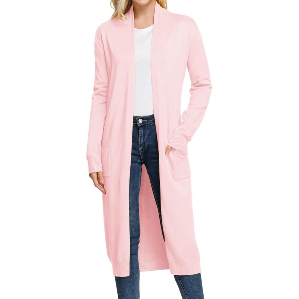 GRACE KARIN Essential Solid Open Front Maxi Long Knitted Cardigan Sweater for Women(Baby Pink)