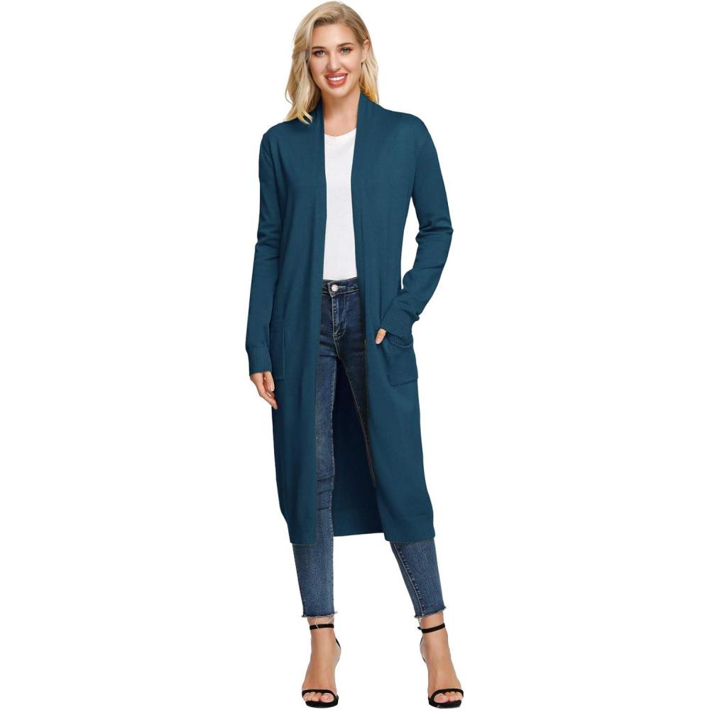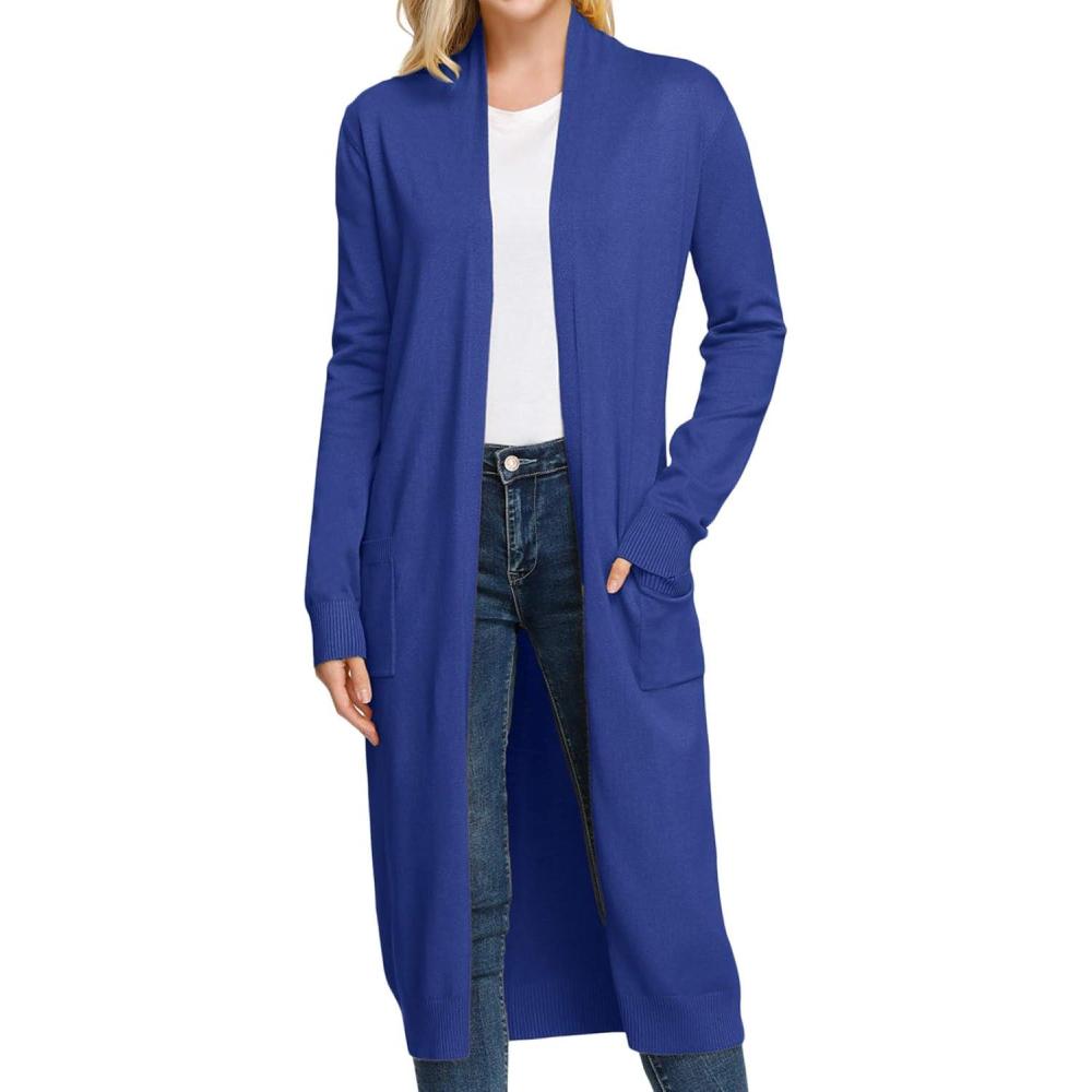 GRACE KARIN Essential Solid Open Front Maxi Long Knitted Cardigan Sweater for Women(Blue)