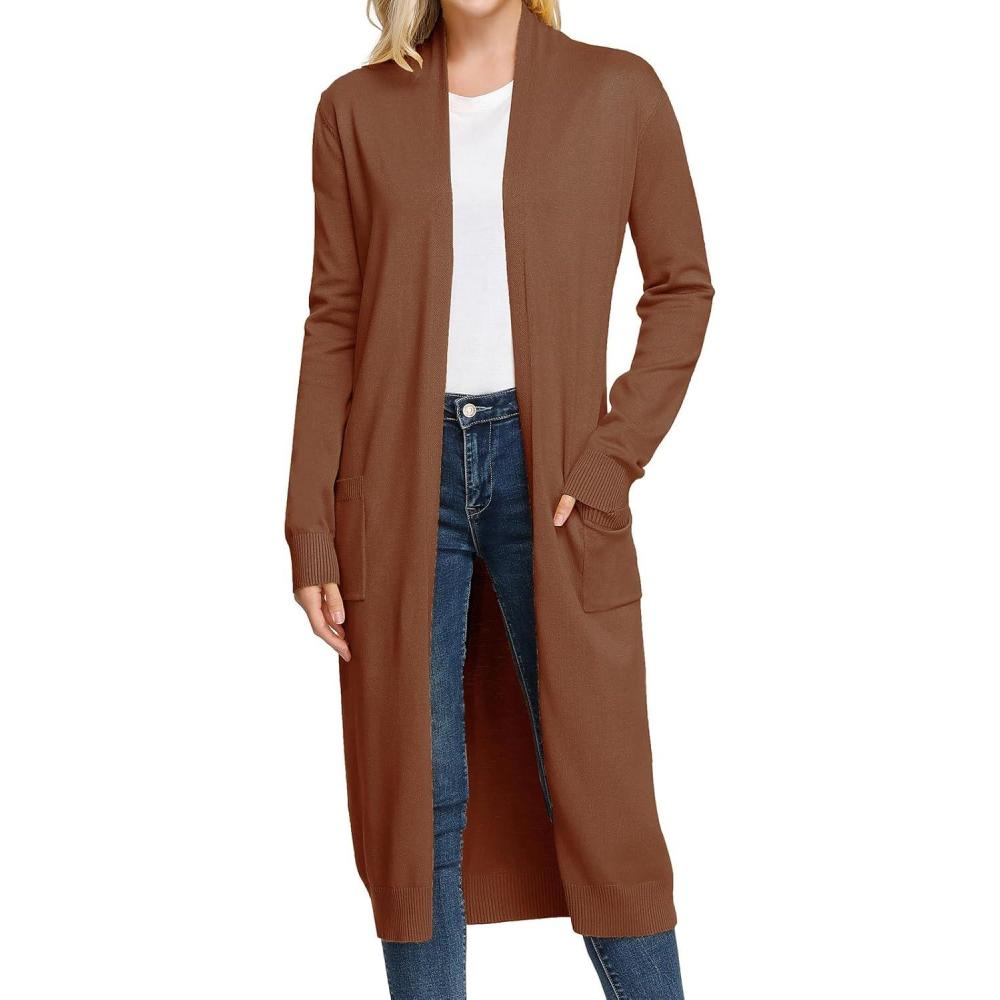 GRACE KARIN Essential Solid Open Front Maxi Long Knitted Cardigan Sweater for Women(Brown)