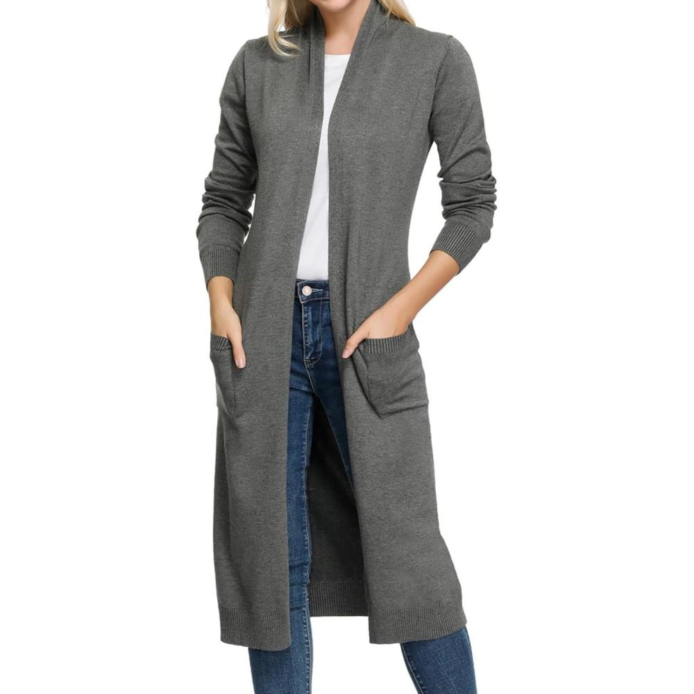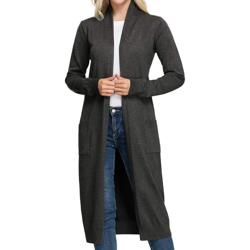 GRACE KARIN Essential Solid Open Front Maxi Long Knitted Cardigan Sweater for Women(Dark Grey)