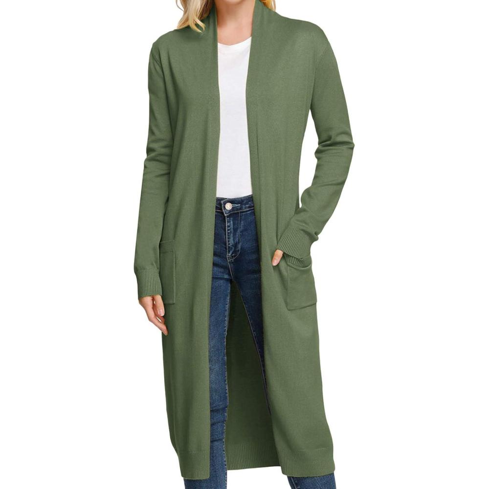 GRACE KARIN Essential Solid Open Front Maxi Long Knitted Cardigan Sweater for Women(Dark Olive Green)