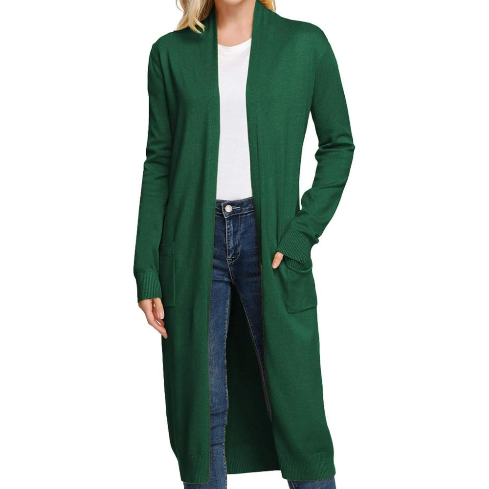 GRACE KARIN Essential Solid Open Front Maxi Long Knitted Cardigan Sweater for Women(Deep Green)