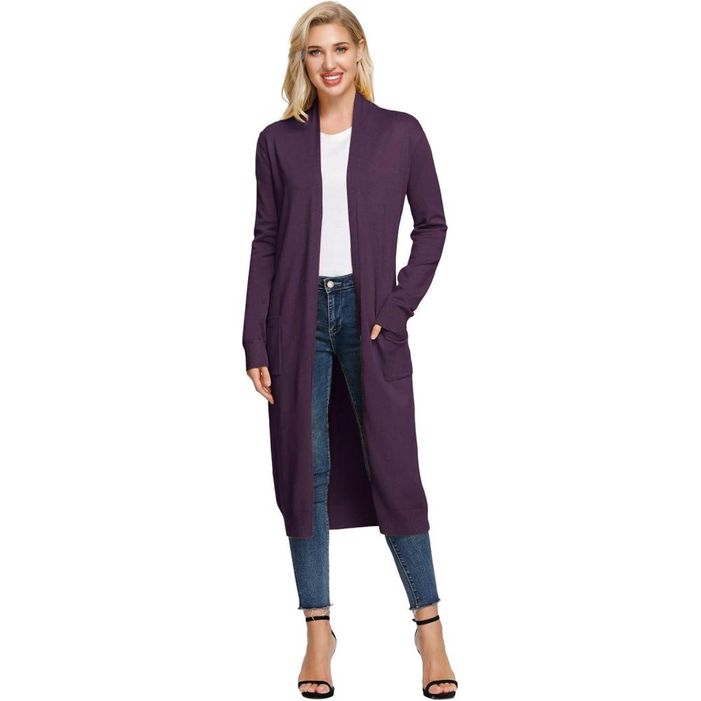 GRACE KARIN Essential Solid Open Front Maxi Long Knitted Cardigan Sweater for Women(Deep Purple)