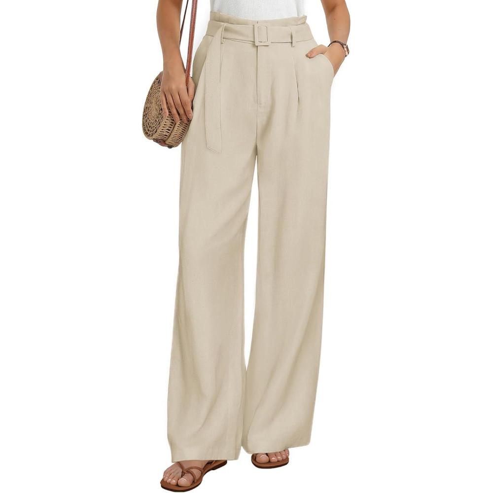 GRACE KARIN Linen Pants Women, Wide Leg High Waisted Palazzo Trousers with Pockets, Business Casual Outfits(Apricot)