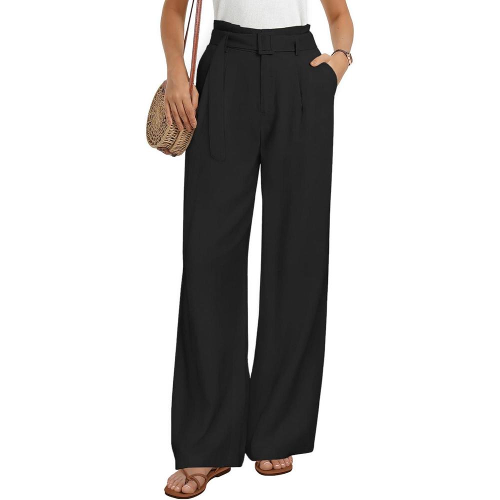 GRACE KARIN Linen Pants Women, Wide Leg High Waisted Palazzo Trousers with Pockets, Business Casual Outfits(Black)