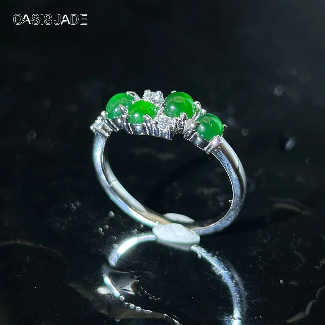 Green Jade High Quality Flower Design Natural Stone Emerald Ring
