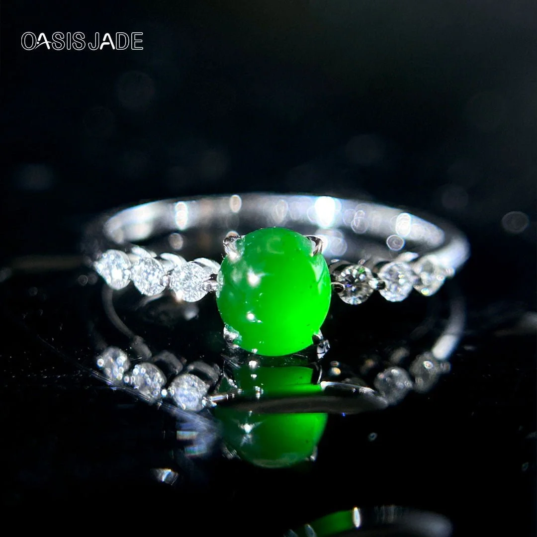 Eastern Popular Jade Gemstone Jewelry Ring 18k Gold Natural Green Jadeite Ring For Women