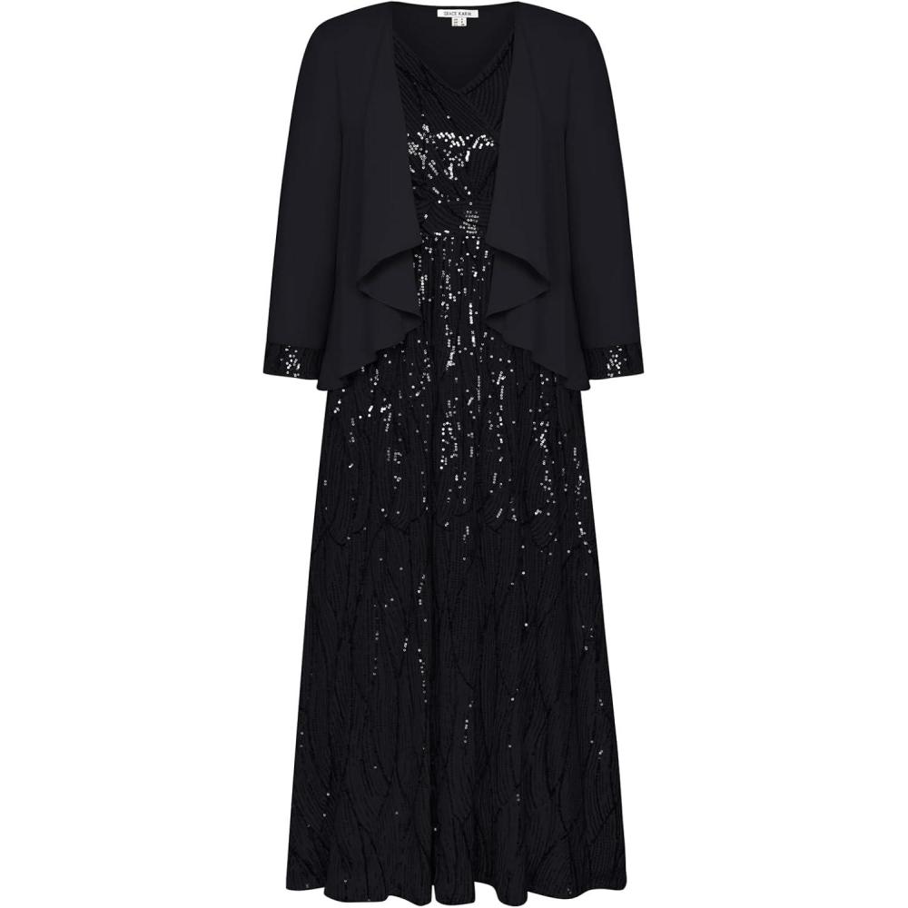 GRACE KARIN 2025 Women’s Two Piece Sequin Dress with Jacket Mother of The Bride Dresses Homecoming Wedding Guest Dresses(Black)