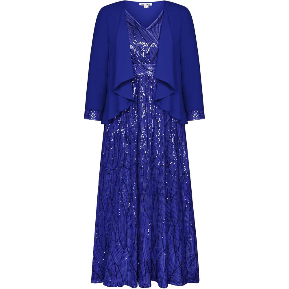 GRACE KARIN 2025 Women’s Two Piece Sequin Dress with Jacket Mother of The Bride Dresses Homecoming Wedding Guest Dresses(Blue)