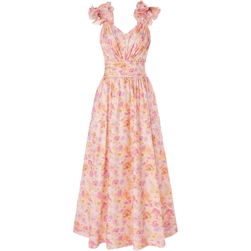 GRACE KARIN 2025 Women’s Summer Floral Print Dress Sleeveless Casual Flowy Sundress A Line Ruffle Wedding Guest Outfit(Apricot Floral)