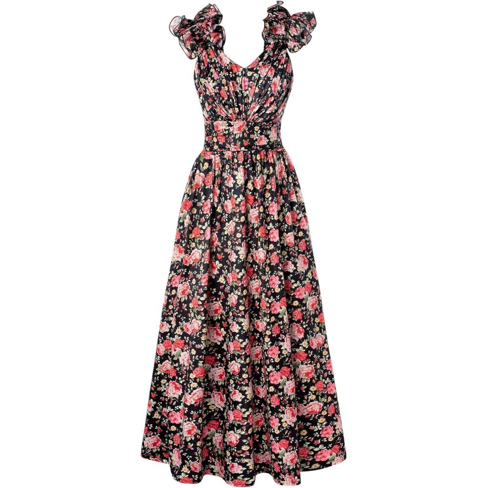 GRACE KARIN 2025 Women’s Summer Floral Print Dress Sleeveless Casual Flowy Sundress A Line Ruffle Wedding Guest Outfit(Black Red)
