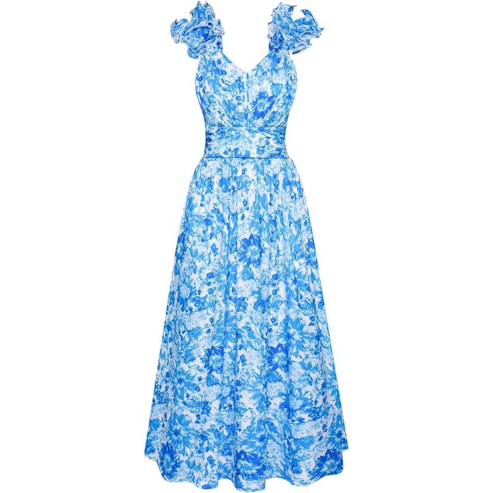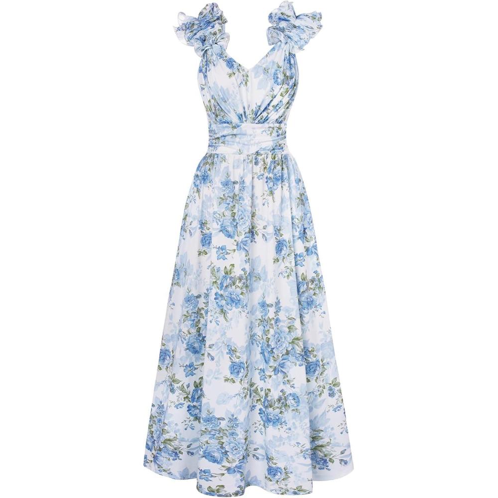 GRACE KARIN 2025 Women’s Summer Floral Print Dress Sleeveless Casual Flowy Sundress A Line Ruffle Wedding Guest Outfit(Blue Floral)