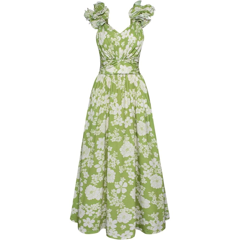 GRACE KARIN 2025 Women’s Summer Floral Print Dress Sleeveless Casual Flowy Sundress A Line Ruffle Wedding Guest Outfit(Green Floral)