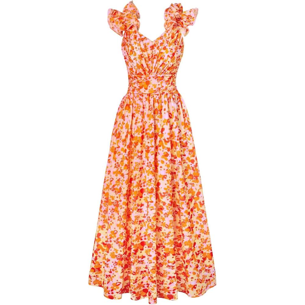 GRACE KARIN 2025 Women’s Summer Floral Print Dress Sleeveless Casual Flowy Sundress A Line Ruffle Wedding Guest Outfit(Orange)