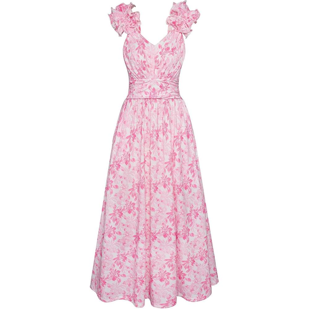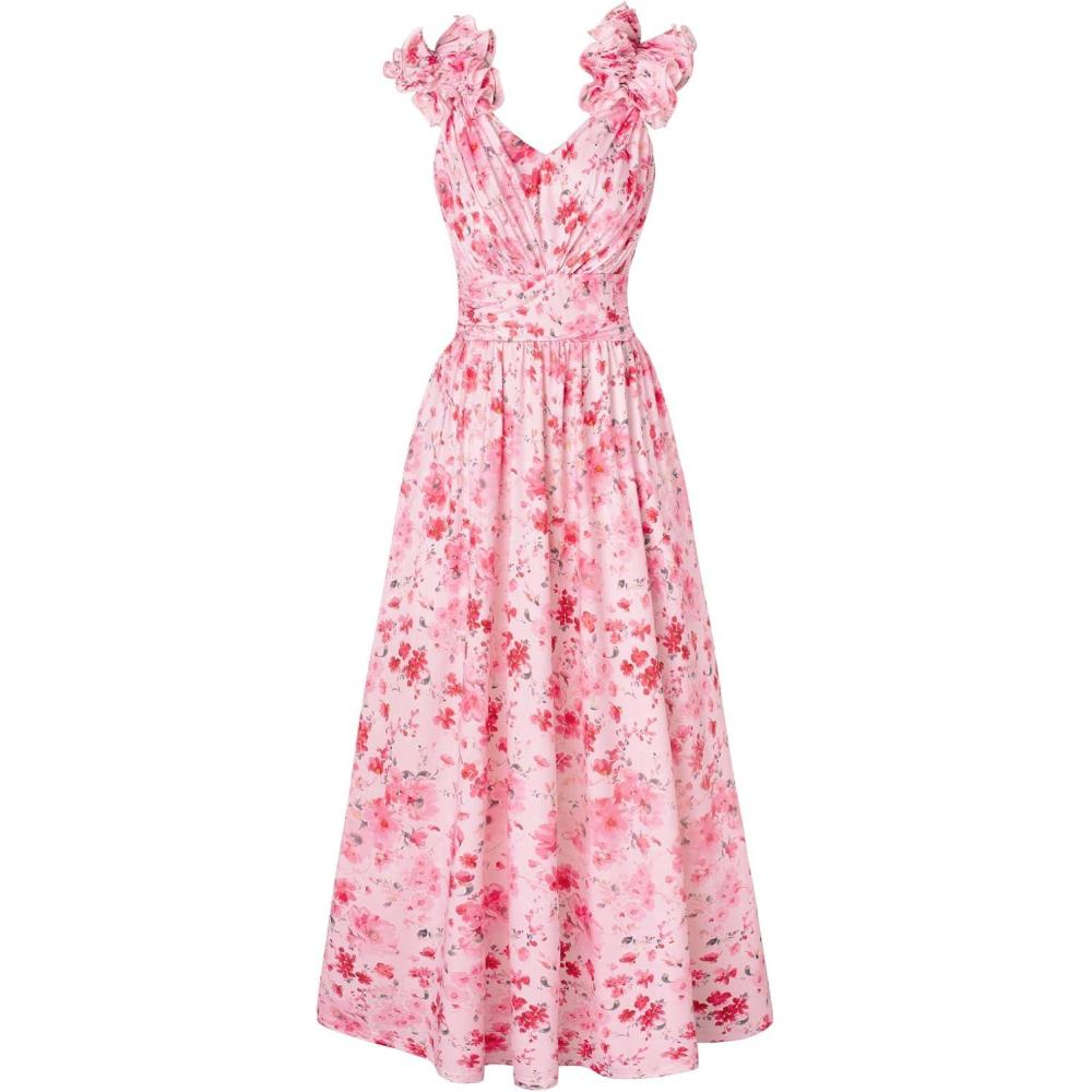 GRACE KARIN 2025 Women’s Summer Floral Print Dress Sleeveless Casual Flowy Sundress A Line Ruffle Wedding Guest Outfit(Pink Floral)