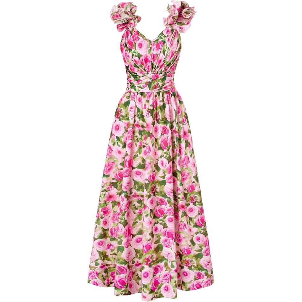 GRACE KARIN 2025 Women’s Summer Floral Print Dress Sleeveless Casual Flowy Sundress A Line Ruffle Wedding Guest Outfit(Pink Green)