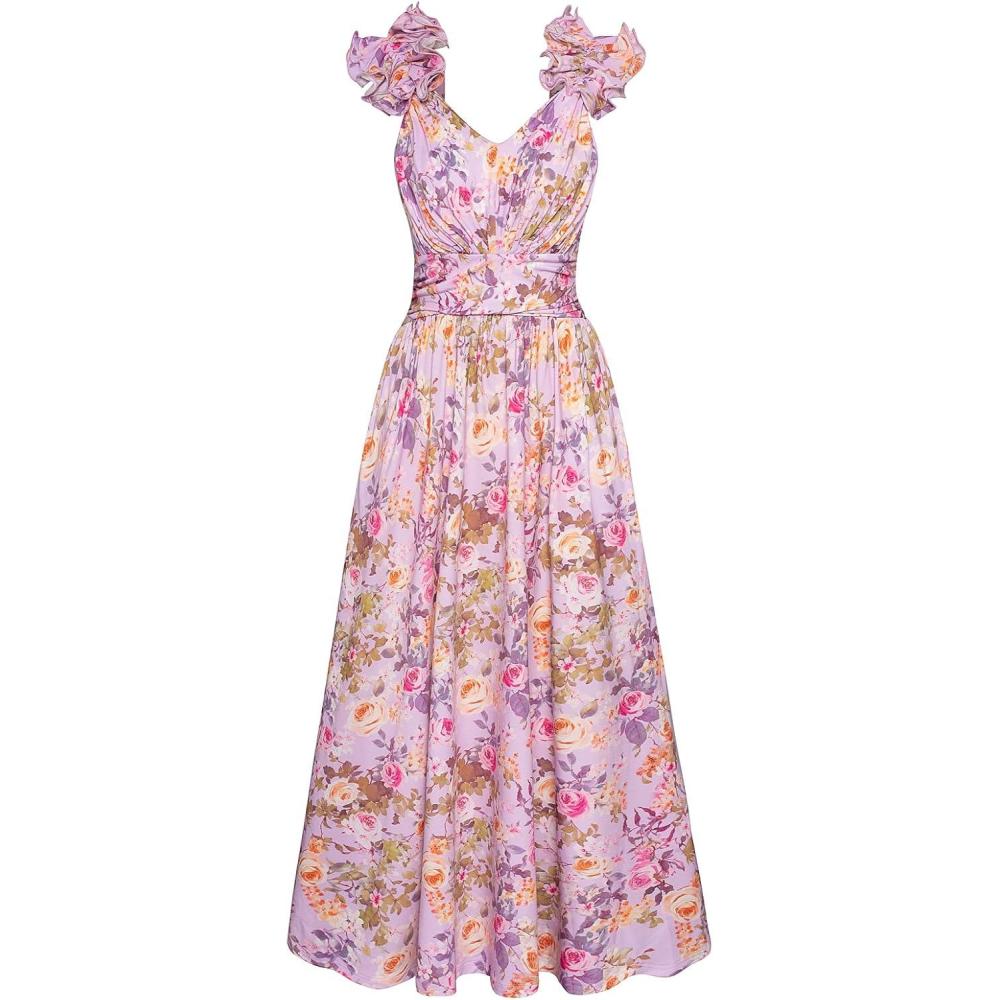 GRACE KARIN 2025 Women’s Summer Floral Print Dress Sleeveless Casual Flowy Sundress A Line Ruffle Wedding Guest Outfit(Purple Green)